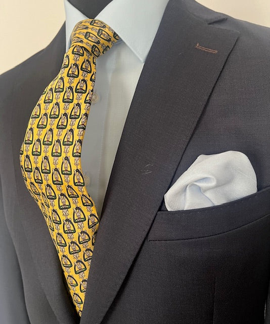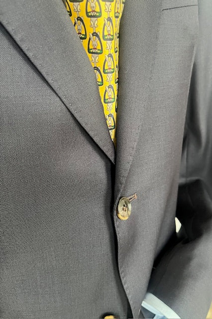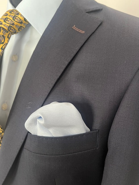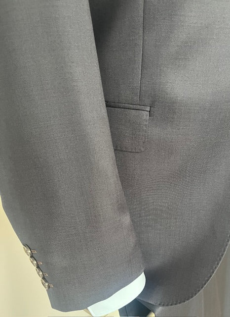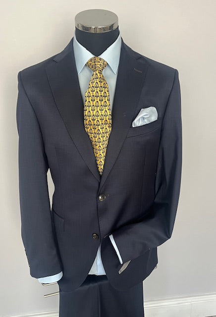 Beautiful pure wool 2 piece, 2 button business suit with side vents, 2 straight outside pockets and 4 internal. The colour would be described as French navy and can be complemented with many shirts and tie combinations.