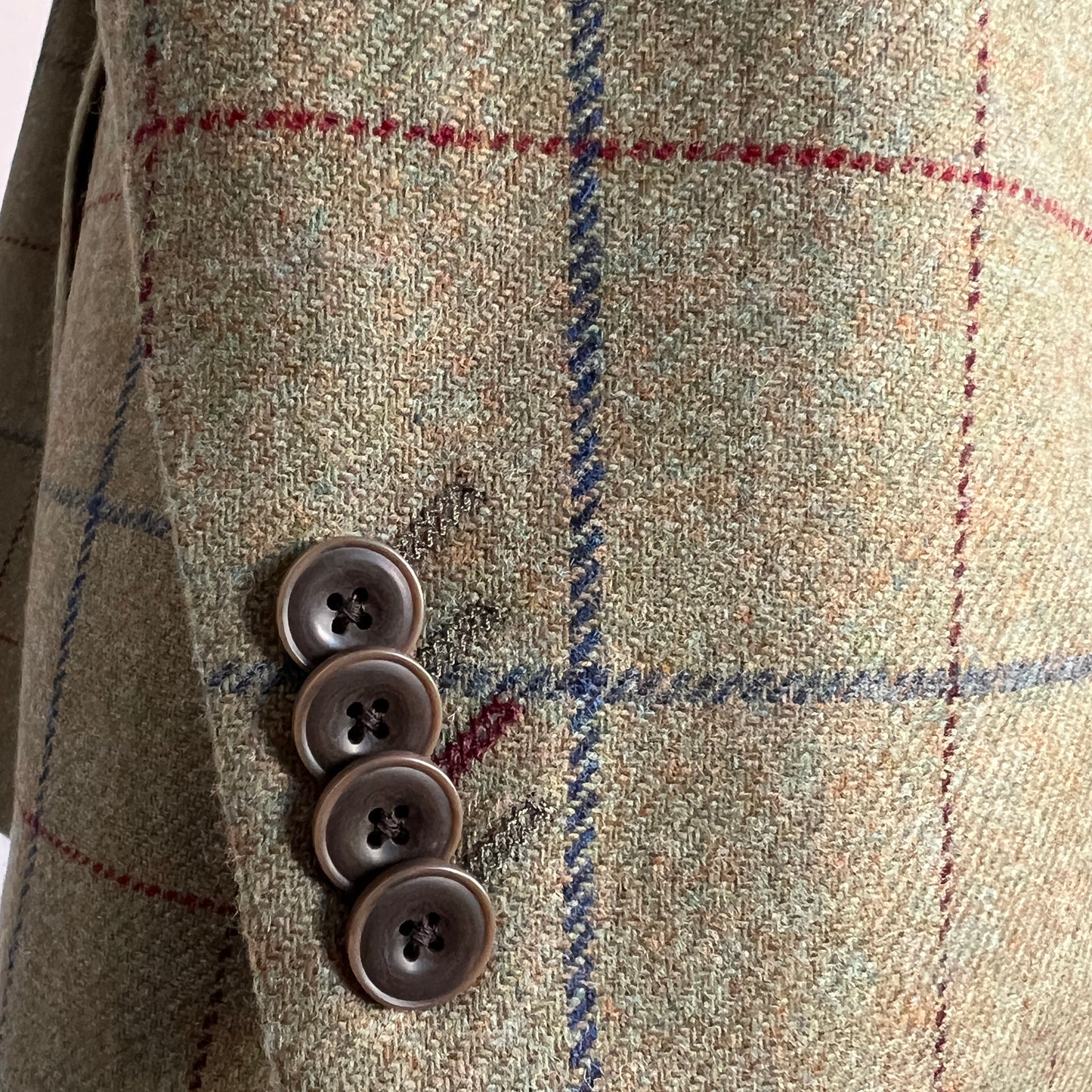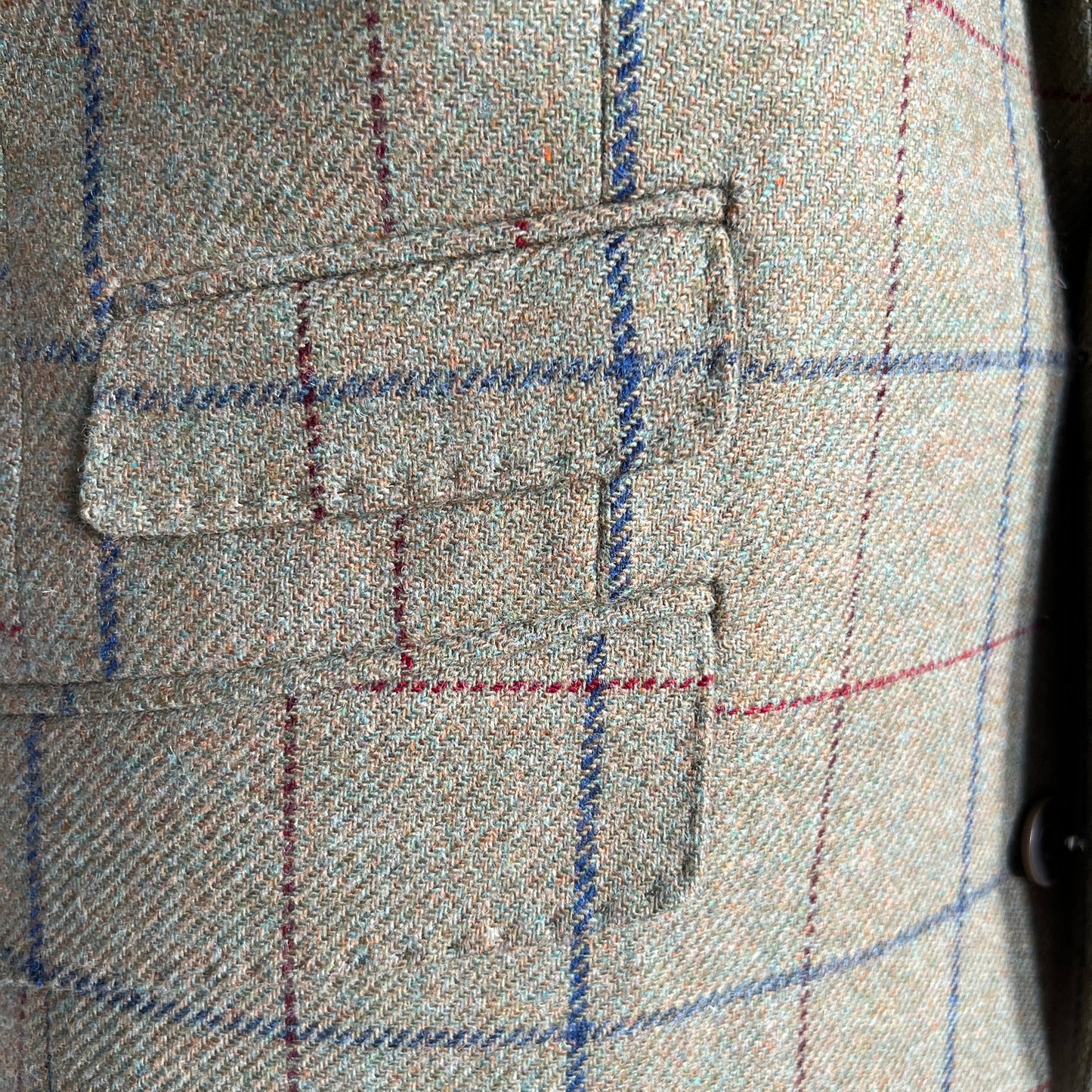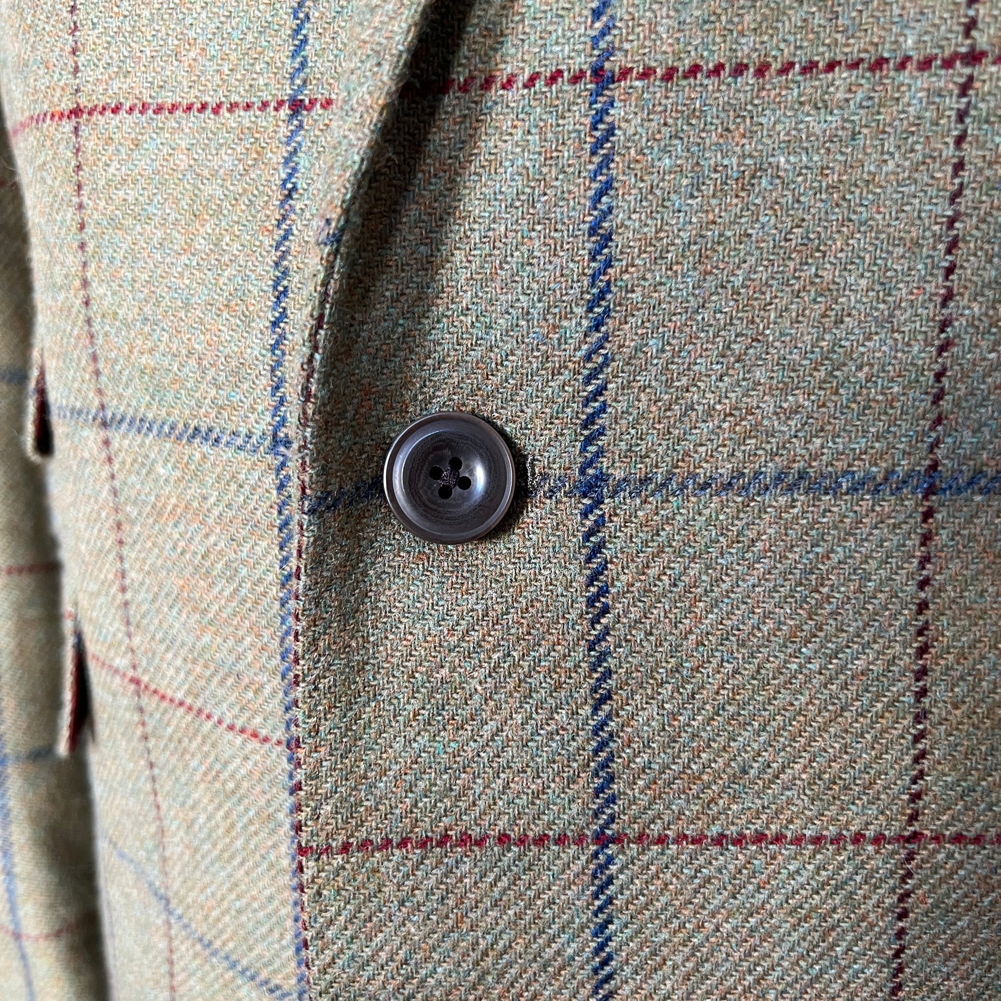 Our green tweed blazer is made from 100% tweed wool with a striking mixed green and blue overcheck