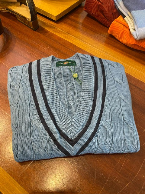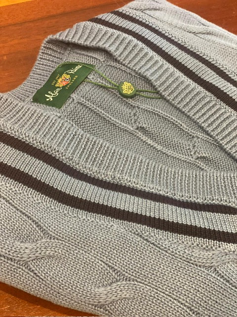 The Classic Cable Knit tank top with detailing in colour mid blue from Alan Paine